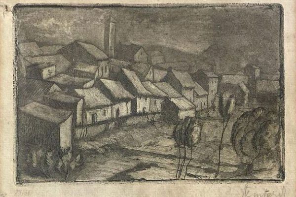 Litografia, firmata a matita in basso a dx, monogrammata nella lastra in basso a sx, 22.4 x 16.5 cm.