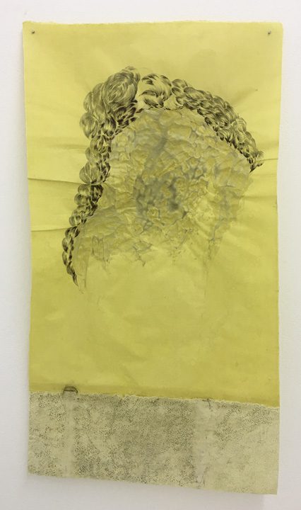 Matita, pigmento, acquerello, inchiostro, colla d’ossa, colla d’amido, emulsione all’uovo su carta coreana Hanji e carta giapponese Washi, 114 x 64 cm.