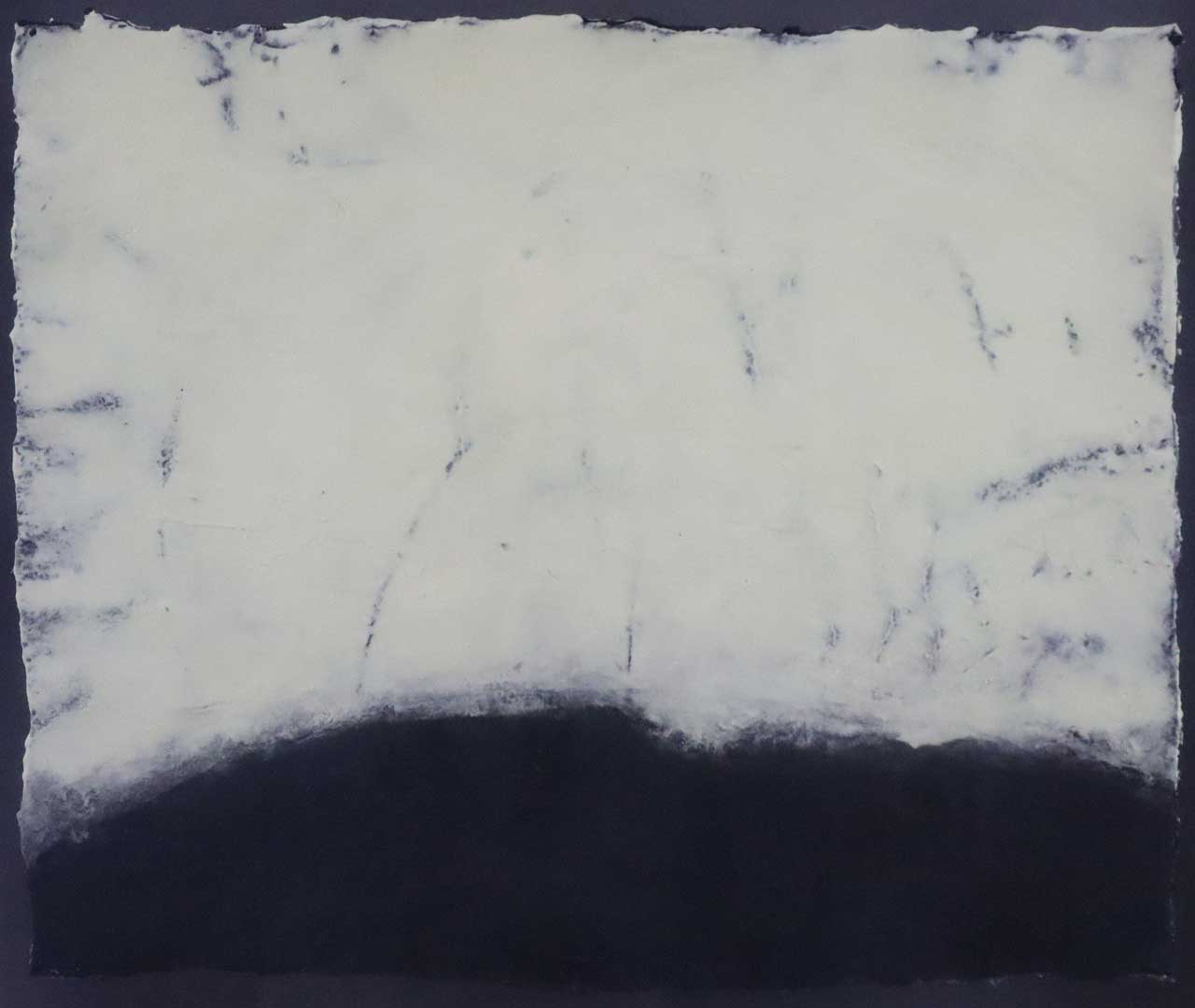 Tecnica mista (zolfo, cenere, acrilico, copertura industriale) su legno, titolato, firmato e datato sul retro, incorniciata in cornice di metallo entro doppio vetro, 38 x 45 cm ca (opera), 59.5 x 70 cm (cornice).