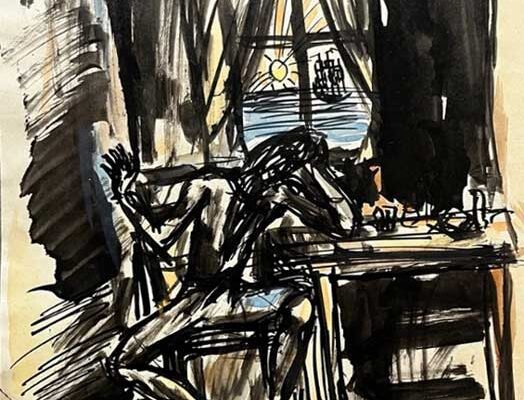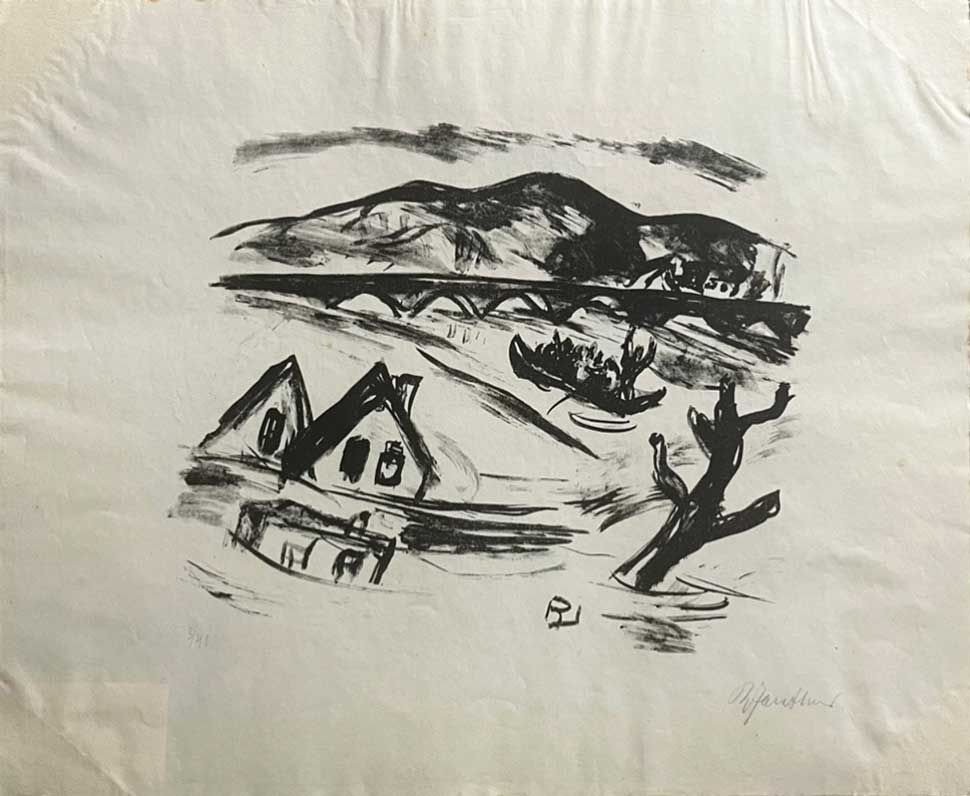 Litografia stampata su carta, monogrammata “RJ” nella lastra in basso al cx-dx, numerata 3/40 in basso a sx, firmata a grafite in basso a dx, 24.5 x 17.5 cm.