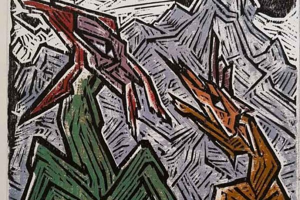 Xilografia stampata su carta, descritta “Handdruck 15” in basso a sx, firmata in basso a dx, 32.1 x 27.6 cm (immagine). Collezione privata, Svizzera.
