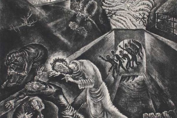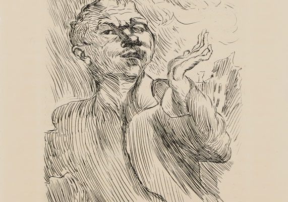 Incisione stampata su carta, da “Die Feuerprobe”, firmata in basso a dx, 17.5 x 13 cm (23.2 x 18.5 cm). Collezione privata, Svizzera (già Collezione Prof. Dr. Mladen Rupec, Marburg).