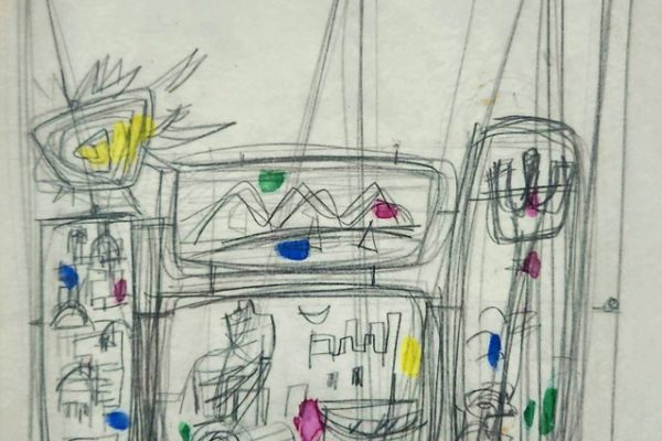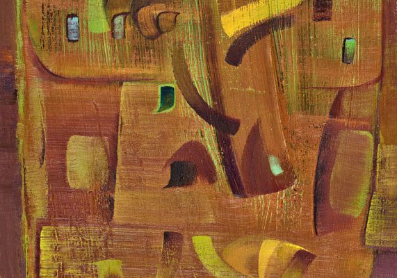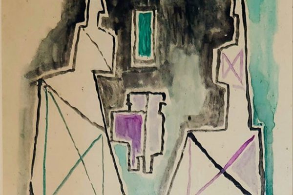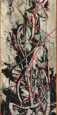 Tecnica mista su tavola, firmata e datata in alto a sx, sul retro descritta “Bern Kesslergasse” e numerata “14”, 130 x 36 cm. Collezione privata, Svizzera.