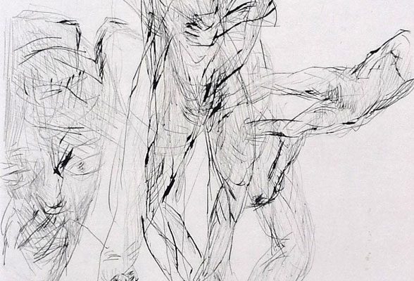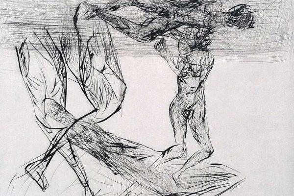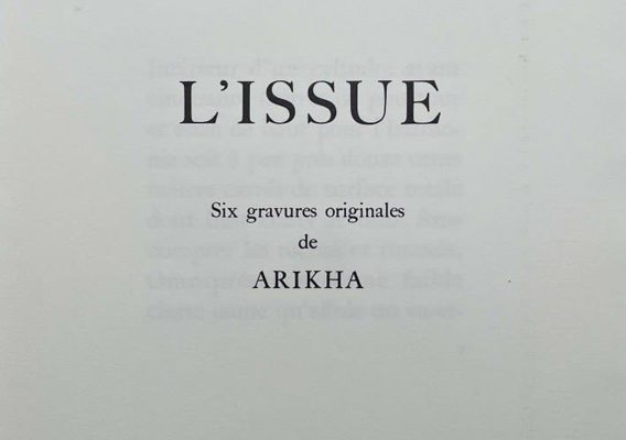 L’Issue, passaggio da “The Lost Ones” di Samuel Beckett, illustrata con 6 incisioni da Avigdor Arikha, 1968. Libro d’artista con 6 incisioni e acquatinta a 5 colori su carta BFK Rives, 28 x 22.5 cm (ognuna), ed. 139, stampato da Féquet et Baudier per le Éditions Georges Visat, Département de