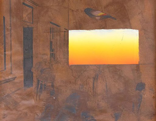 Tecnica mista su cartone, firmata in basso a sx, 34 x 49 cm. Collezione privata, Svizzera.