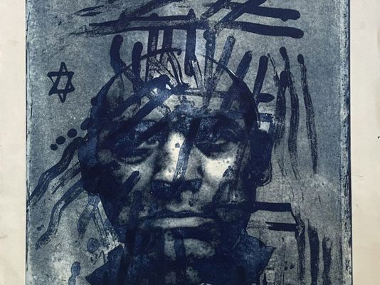 Tecnica mista su carta, firmata in basso a dx, in ebraico e latino, 48.8 x 68.9 cm. Collezione privata, Svizzera.
