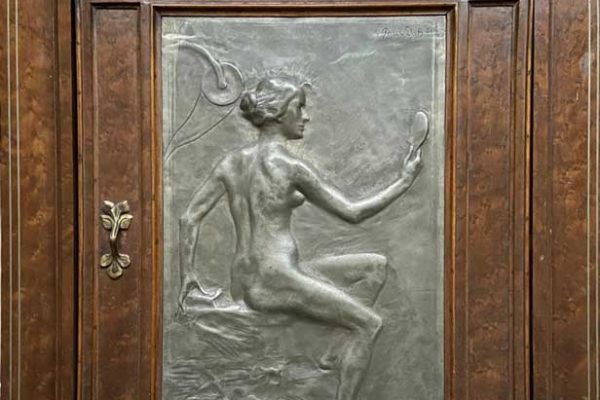 Legno, bronzo, specchio, firmato nel bronzo in alto a dx, 51 x 51 cm (51 x 153 cm). Collezione privata, Svizzera.