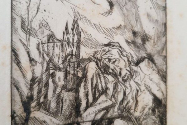 Puntasecca stampata su carta, monogrammata e datata nella lastra in basso a sx, firmata in basso a dx, 22.8 x 18.5 cm. Collezione privata, Svizzera.