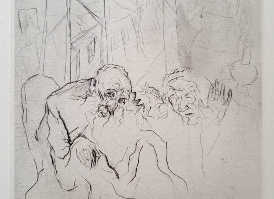 Incisione e punta secca stampata su carta, firmata in basso a dx, 19.7 x 15 cm. Collezione privata, Svizzera.