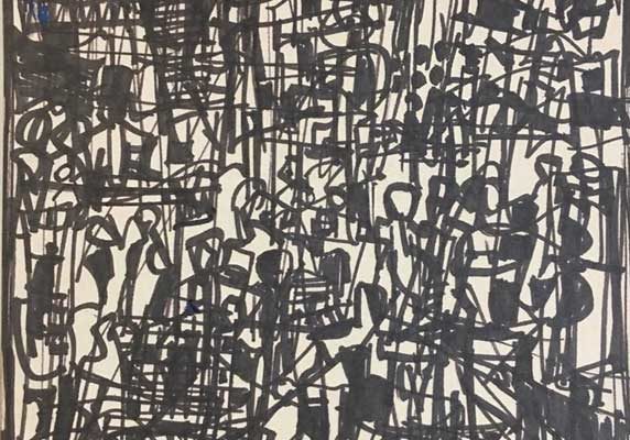 Inchiostro e acquerello su carta montato su tela, firmato e datato in basso a sx, 65 x 50 cm. Collezione privata, Svizzera.