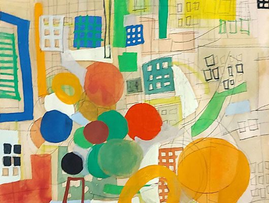 Acquerello e pennarelli colorati su carta, firmato e datato in basso al cx, 24.1 x 30.6. Collezione privata, Svizzera.