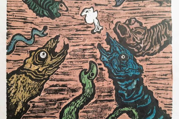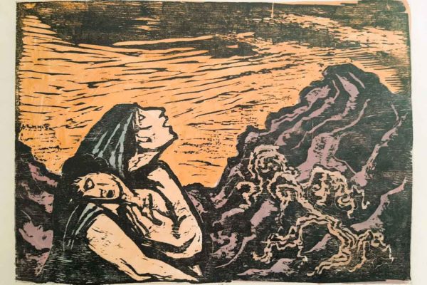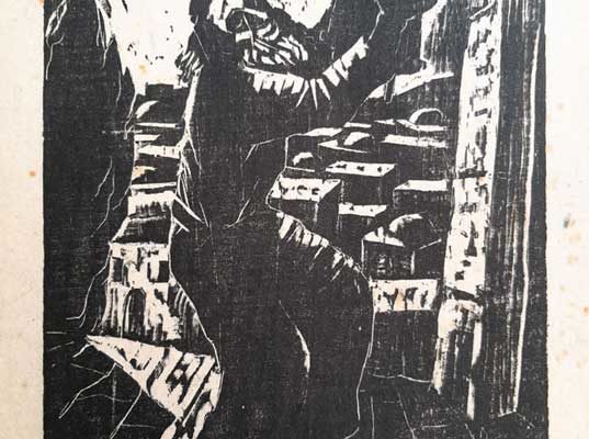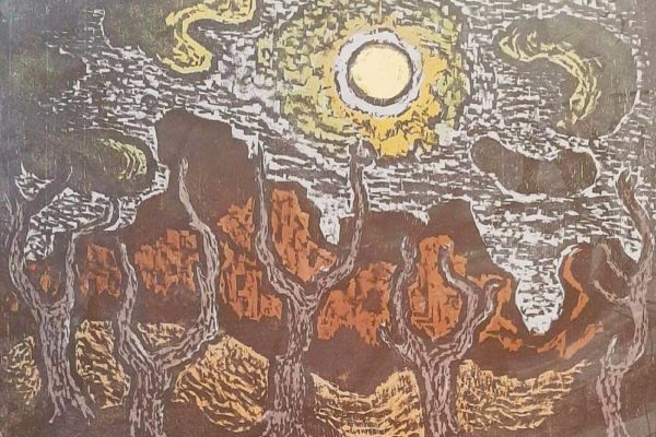 Xilografia a colori su carta, descritta in ebraico in basso a sx, numerata 10/30 in basso al cx, firmata e datata in basso a dx, 37 x 47 cm (44.4 x 54 cm). Collezione privata, Svizzera.