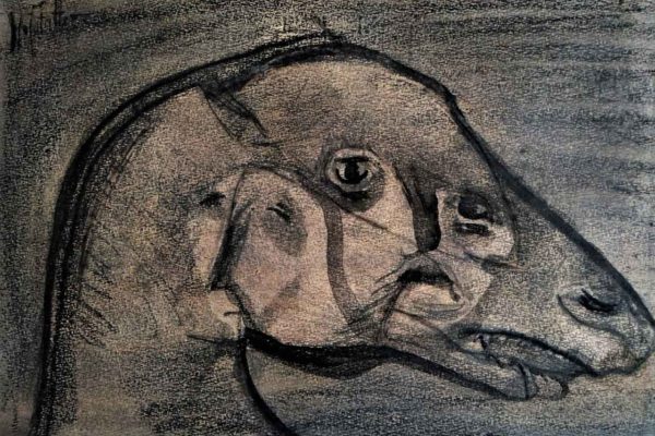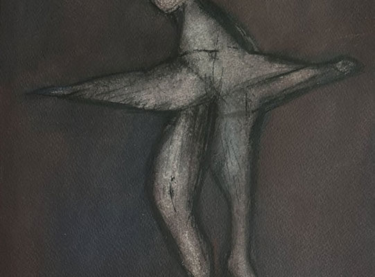 Carboncino e gouache su carta, firmato in alto a sx, 33 x 46 cm. Collezione privata, Svizzera.