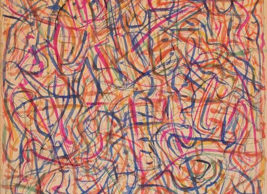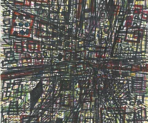 Gouache e inchiostro su carta, firmata in basso a sx, 53 x 38 cm. Collezione privata, Svizzera.