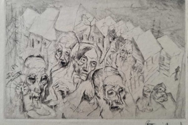 Punta secca, firmato in basso a dx, monogrammato e datato nella lastra in basso a sx, 9.8 x 14.7 cm (22.2 x 30.7 cm). Collezione privata, Svizzera (già Collezione Dr. Karl Schwarz, Israele).