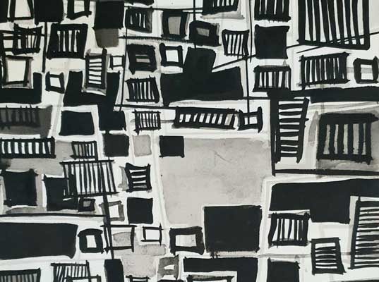 Inchiostro su carta, firmato e datato in alto a dx, 21 x 29.7 cm. Collezione privata, Svizzera.