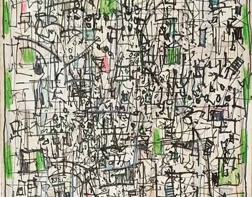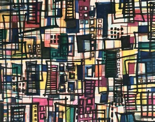 Inchiostri e matita colorata su carta, firmato in basso a sx, 24 x 32 cm. Collezione privata, Svizzera.