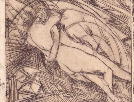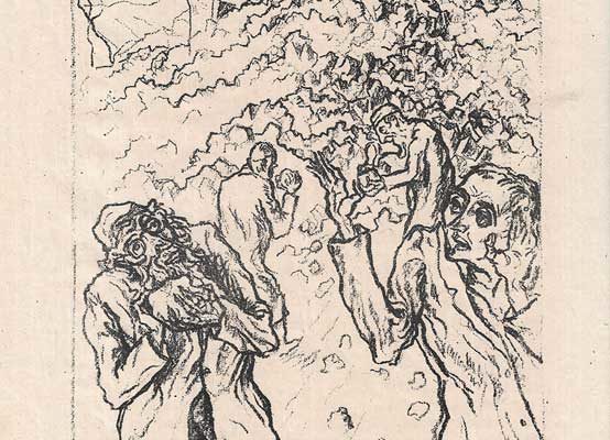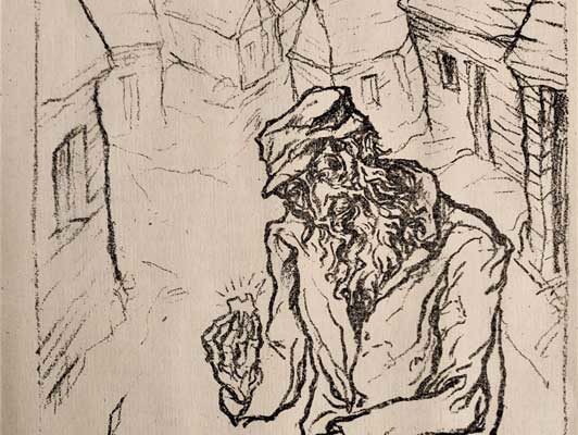 Puntasecca in colore seppia, firmata “H” nella lastra in basso a dx, firmata e datata “Karl Jakob Hirsch 1916” in basso a dx, descritta “Probedruck I. 2. Zustand.” in basso a sx, 20 x 14.8 cm (21.6 x 16.1 cm). Collezione privata, Svizzera (già Hadassah Klachkin Collection, Tel Aviv, Israele).