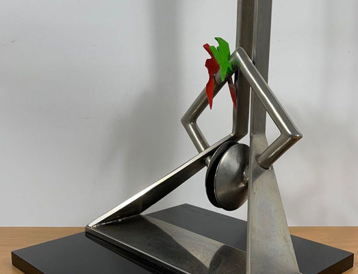 Scultura di acciaio inossidabile, firmata e datata, 30 x 20 x 20 cm. Collezione privata, Svizzera.