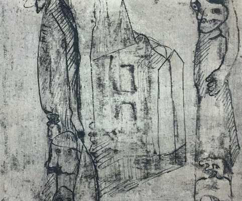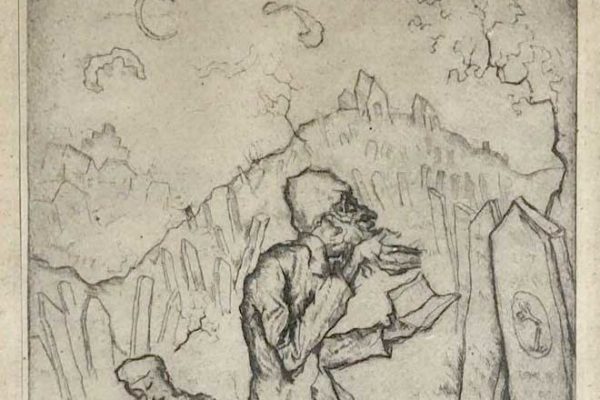 Incisione ad Acquaforte, stampata su carta, firmata e datata nella lastra in basso a dx, siglata e descritta “1. Dr.” a matita in basso a sx, 16 x 9.5 cm (28 x 17 cm). Collezione privata, Svizzera.