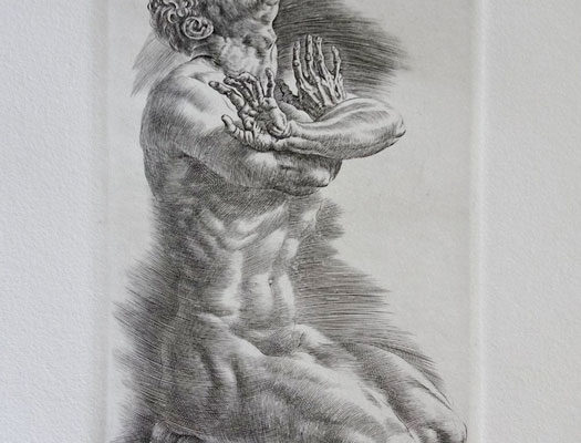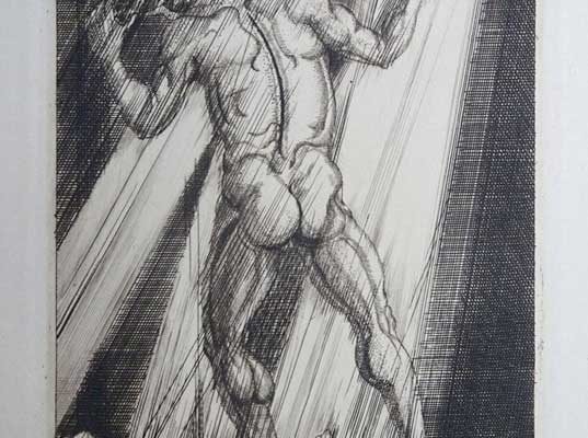 Incisione su rame stampata su carta, firmata in basso a dx, titolata in basso a sx, 17.0 x 11.5 cm (37.9 x 26.8 cm). Collezione privata, Svizzera.