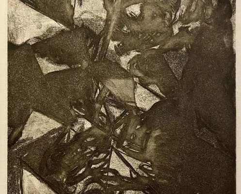 Incisione stampata su carta, firmata in basso a dx, e numerata 105/139 in basso a sx, 24 x 19 cm. Collezione privata, Svizzera.
