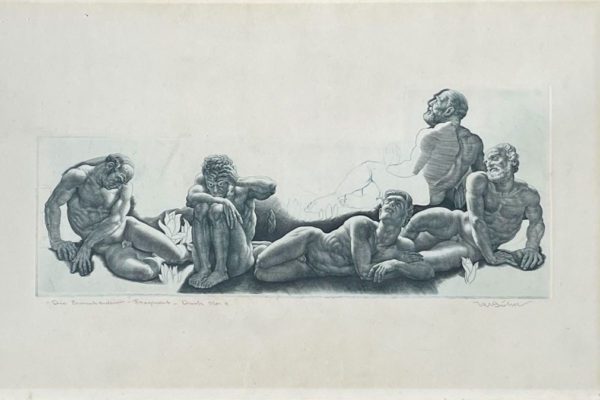 Acquaforte stampata su carta, numerata 3/50, firmato e datato a matita in basso a dx, 29.5 x 23.5 cm (53.5 x 39.5 cm). Collezione privata, Svizzera.