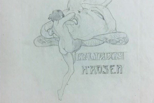 Ex Libris per H. Rosen, litografia su carta, 11 x 9 cm (14.4 x 12 cm). Collezione privata, Svizzera.