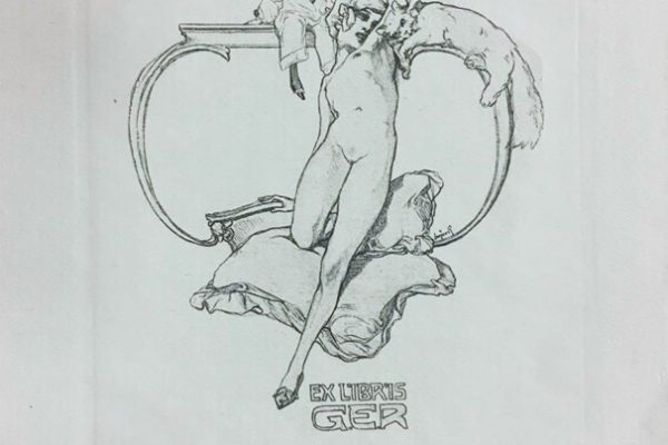 Ex Libris per Ger, litografia su carta, 10.5 x 8.5 cm (13.7 x 11.4 cm). Collezione privata, Svizzera.