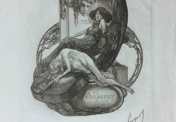 Ex Libris per Stefan Kellner, incisione su carta, firmato nella lastra, 10.3 x 7.2 cm (14.7 x 9.8 cm). Collezione privata, Svizzera.