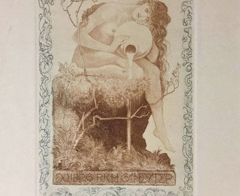 Ex-Libris per Richard Schlüter, acquaforte su carta, 13.4 x 9.0 cm (19.8 x 13.5 cm). Collezione privata, Svizzera.
