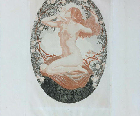 Ex-Libris per Agnes Wegmann, acquaforte su carta, 16.1 x 9.9 cm (24.1 x 15.7 cm). Collezione privata, Svizzera.