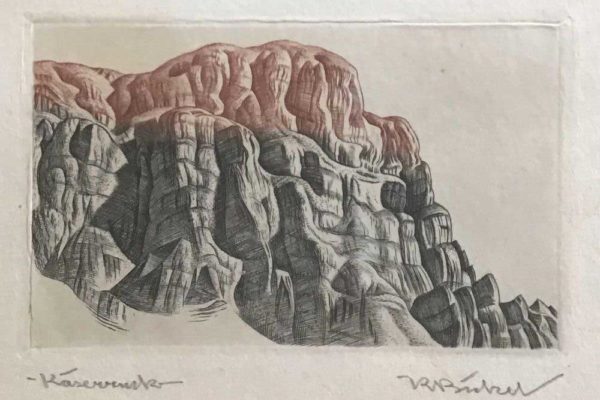 Incisione su rame stampata a due colori su carta, titolata in basso a sx e firmata in basso a dx, 7.6 x 12 cm. Collezione privata, Svizzera.