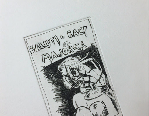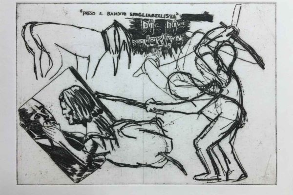 Acquaforte stampata in nero su carta, firmata e datata sul retro in basso a centro/destra con la dicitura “provino”, 14.7 x 9.7 cm (29.6 x 21.5 cm). Collezione privata, Svizzera (donazione dell’artista).