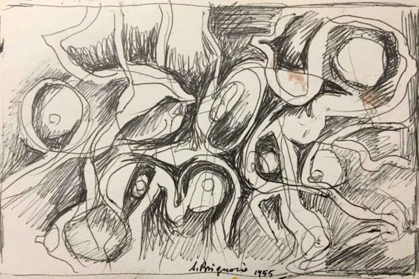 Inchiostro su carta, firmato e datato in basso a sx, 34 x 25 cm. Collezione privata, Svizzera (già Collezione Raffi Lavie, Israele).