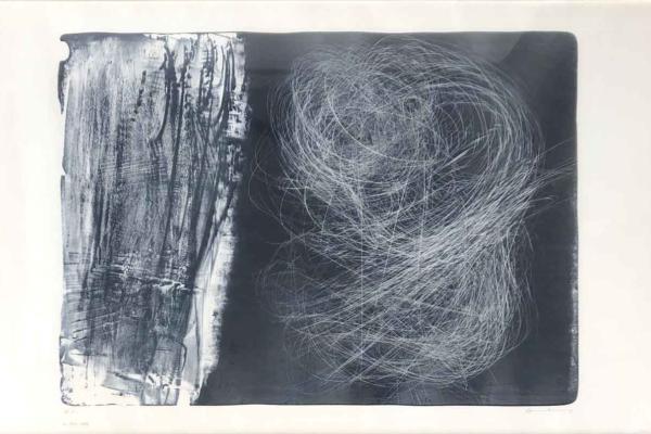 Litografia su carta BFK Rives, firmata a matita in basso a dx e titolata „H.C. L-51-1973“ in basso a sx, 79 x 109 cm ca. Collezione privata, Svizzera.