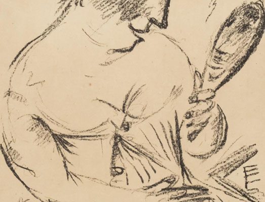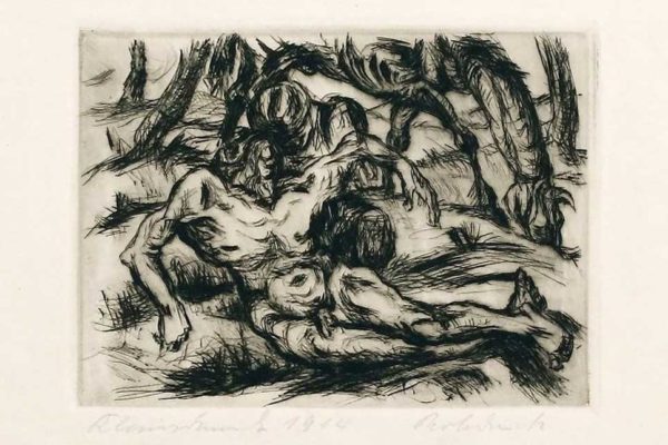 Punta secca stampata su carta, monogrammata e datata nella lastra in basso a sx, descritta a matita “Probedruck 1” in basso a dx, firmata e datata in basso a sx, 11 x 8 cm (31 x 25 cm).