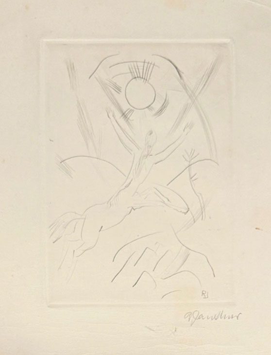 Engraving printed on paper, monogrammed in the plate lower right, titled “Kentaur” lower left, signed lower right.