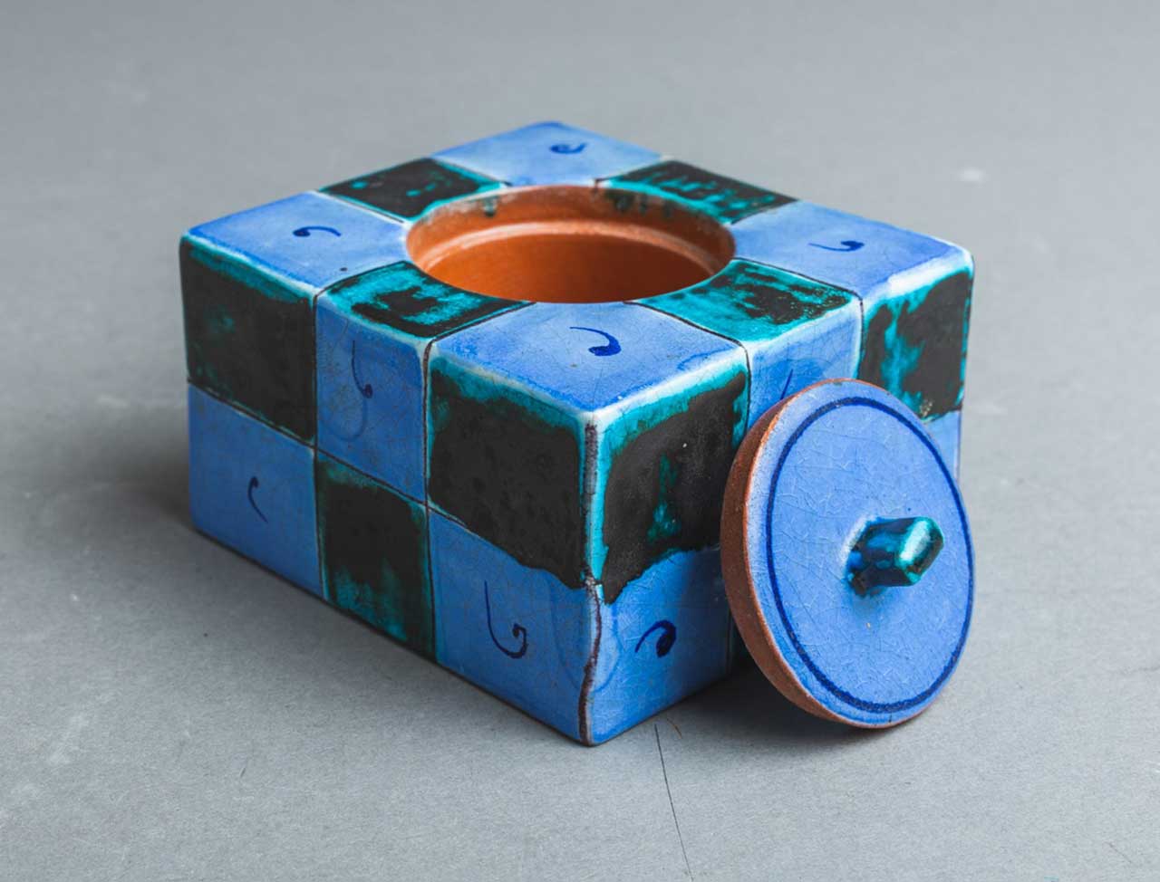 Ceramic, Karlsruhe Majolica, designed by Paul Speck, Karlsruhe factory mark, monogrammed with the “P. Sp.” (Paul Speck) mark and marked “Made in Germany,” approx. 9 × 10.5 cm.