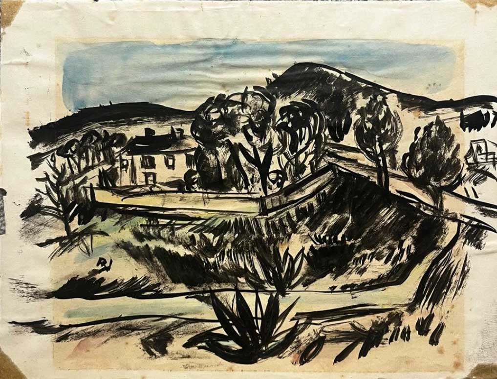 Ink and watercolor on paper, monogrammed RJ lower center-left, 24.5 x 17.5 cm.