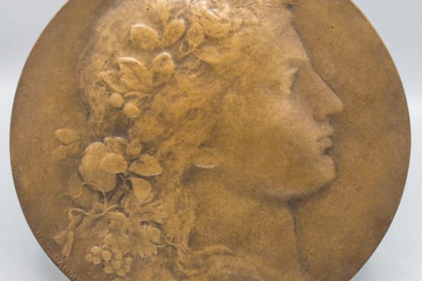 Single-sided medallion, bronze, signed “HPONSCARME” Ø 24.2 cm, depth 0.6 cm. Private collection, Switzerland.