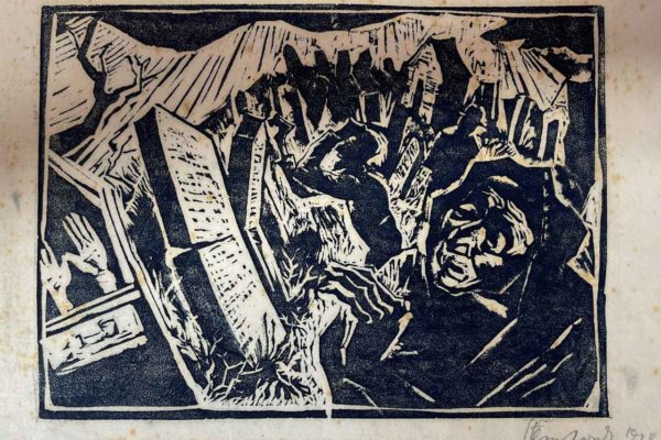 Woodcut printed on paper, monogrammed in the plate at the bottom right, signed at the bottom right and dated “1913” on the cardboard, 15 x 10 cm (image size). Private collection, Switzerland.