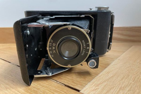 Camera Kodak Jiffy SIX-20, scissor camera 6 x 9, 1930s. With original case. Private collection, Switzerland.