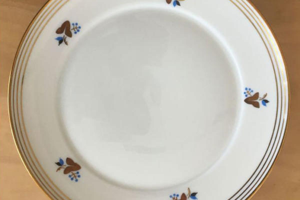 Hand-decorated porcelain, signed “L Gobat XI 1952”. Private collection, Switzerland.
