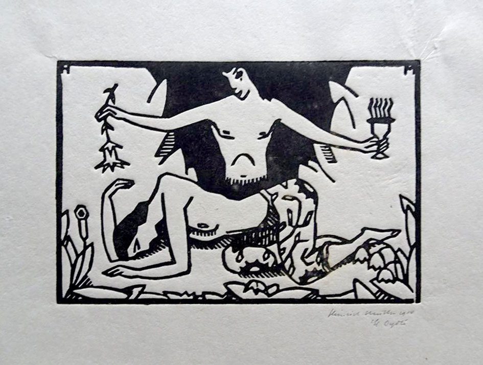 Xilografia stampata su carta, monogrammata in alto a sx (H) e dx (M), firmata e datata in basso a dx.