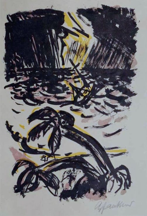 Lithograph printed on hand-coloured paper, monogrammed in the plate lower left, signed lower right.