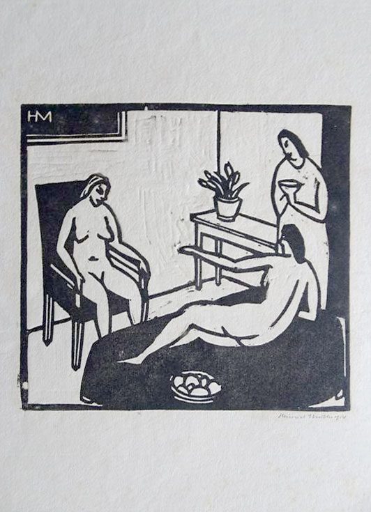 Woodcut printed on paper, monogrammed in the plate upper left, signed and dated lower right.