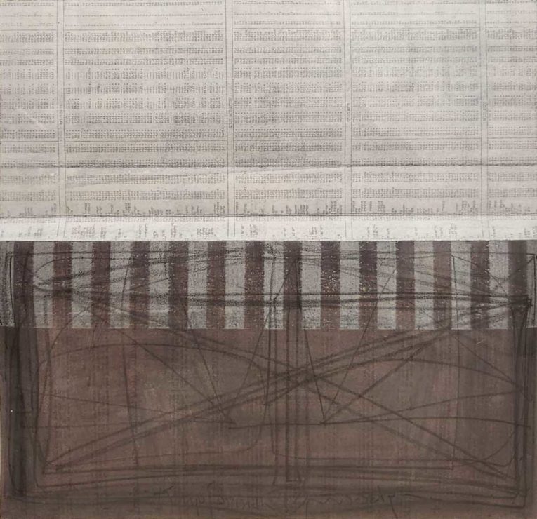 Mixed media on paper and collage, signed in Latin and Hebrew lower centre, 50 x 50 cm.