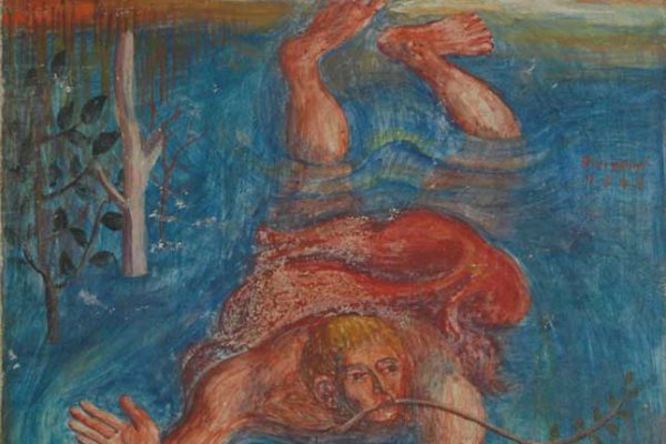 Water, death, the ship that bears survivors or humanity that falls and passes on, love affairs and sensual passions: these are the themes he developed obsessively, stripping every possible inhibitory veil from his emotional, ever-dissatisfied feeling and striving to reveal the mystery of existence and of its inexorable ending. Life, Death and Sexuality, like so many assumptions of human vanity, are represented here in a more terminological vein: the artist’s rapid and colourful gesture and the fragmentation of a society in search of an identity refer back to brutal Expressionist figures like Martin Disler (1949-1996), Louis Soutter (1871-1942) and Varlin (1900-1977).